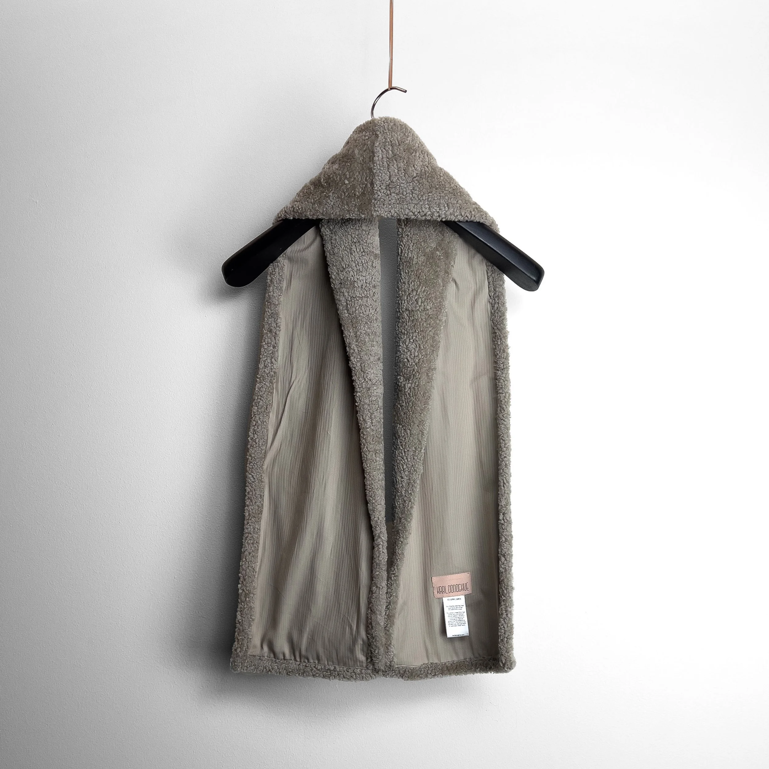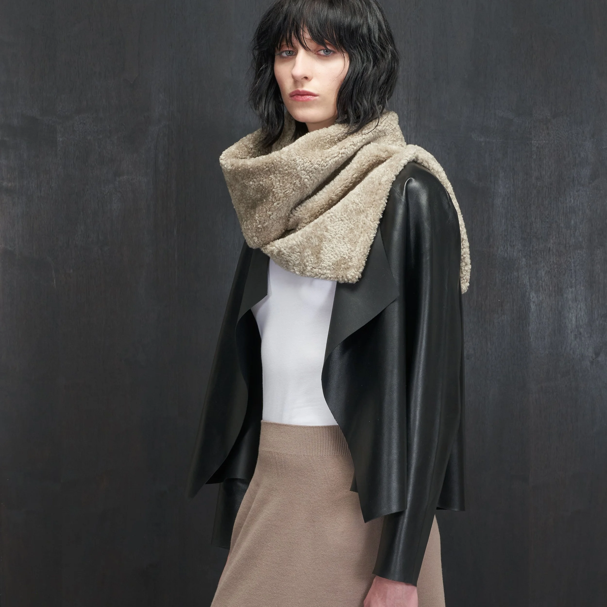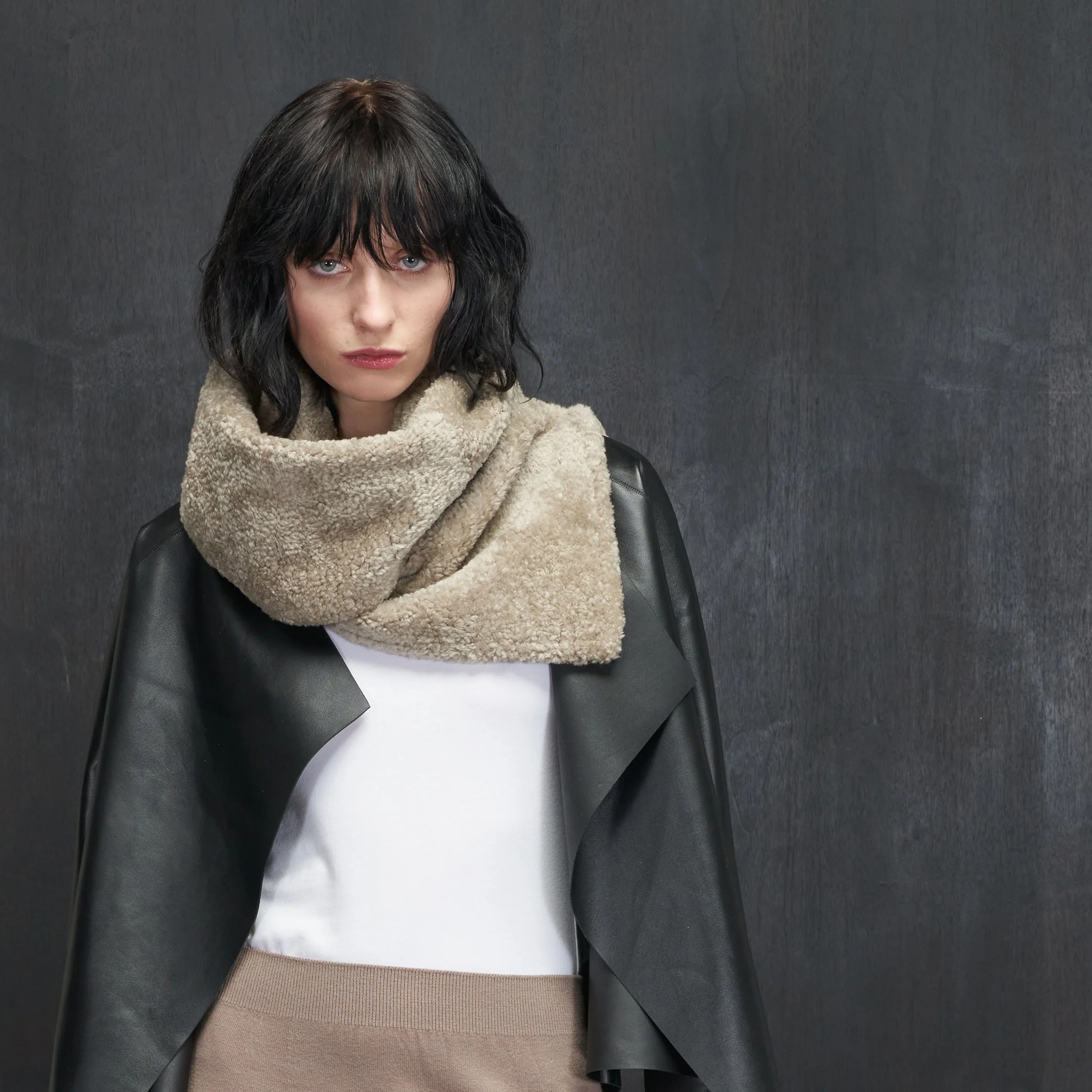 Our cosy Chenille shearling scarf is lined in herringbone cotton. It can be styled in many different ways by using the discrete hook & loop.