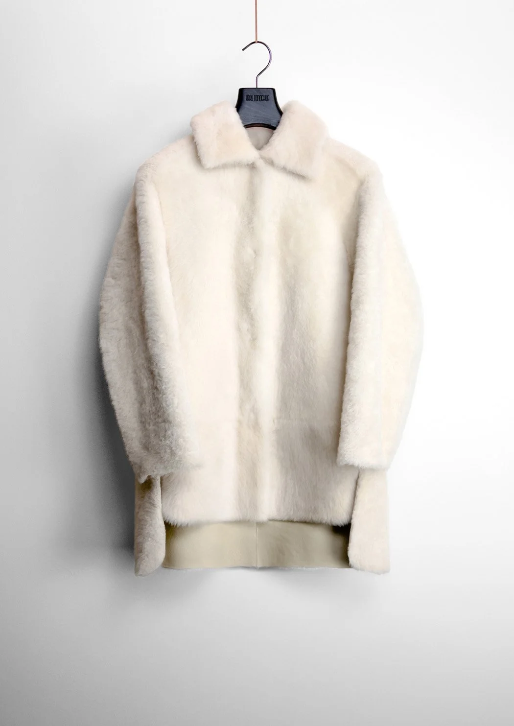LLSBCW4 | Feather Shearling Single Breasted Crombie Coat